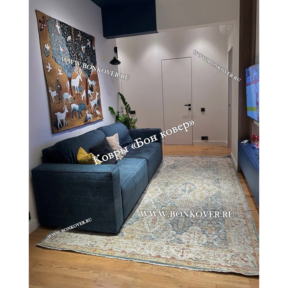 Изящный Турецкий Ковер Для Гостиной Дизайн 30445 наполняет интерьер гостиной теплом и уютом, гармонично сочетает в себе изящество и стиль. Он выполнен из высококачественного сырья, прочный и долговечный.