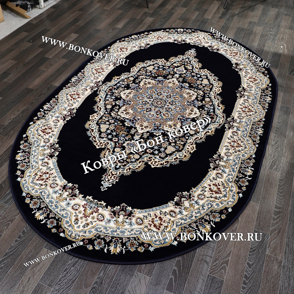 Турецкий Ковер Медальон дизайн 72 Синий Овальный станет великолепным преображением жилого помещения, подчеркивая высокий статус хозяина.